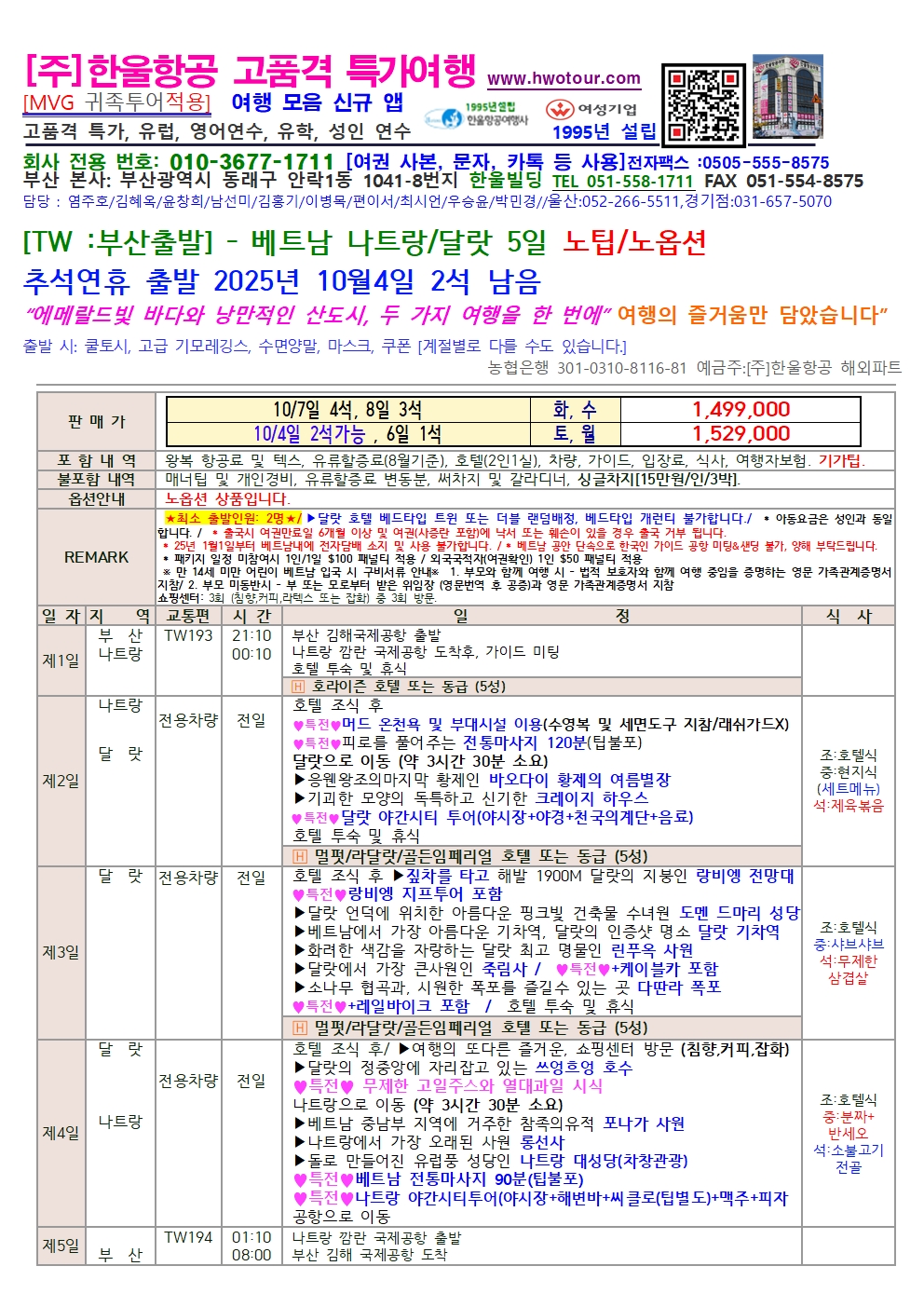 [부산출발] 추석연휴 10월4일 출발확정 베트남 푸꾸옥 노팁 노옵션 5일
