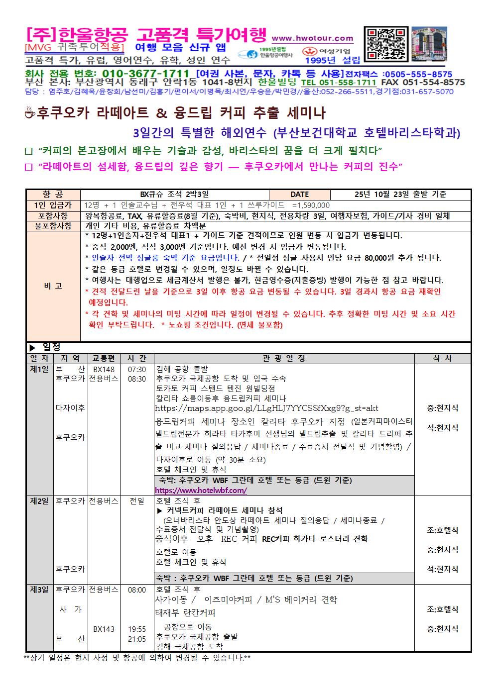 3일간 특별한 해외연수 (부산보건대학교 호텔 바리스타학과) 후쿠오카 라떼드립 +융드립 커피추출세미나