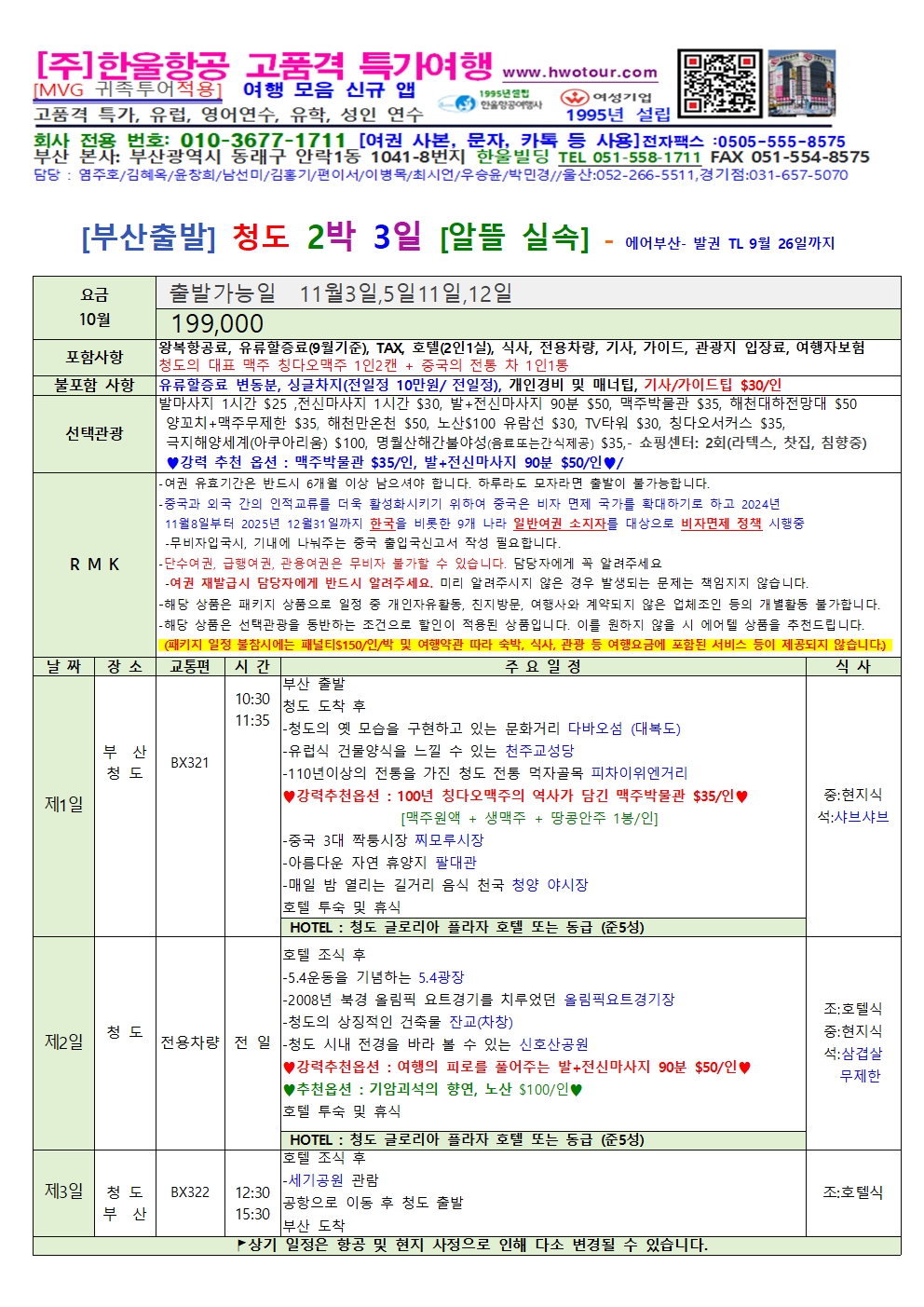 [부산출발] 11월 특가 청도3일 유럽감성 해양도시 (칭다오) “바다와 맥주의 도시, 청도에서 즐기는 낭만 여행”
