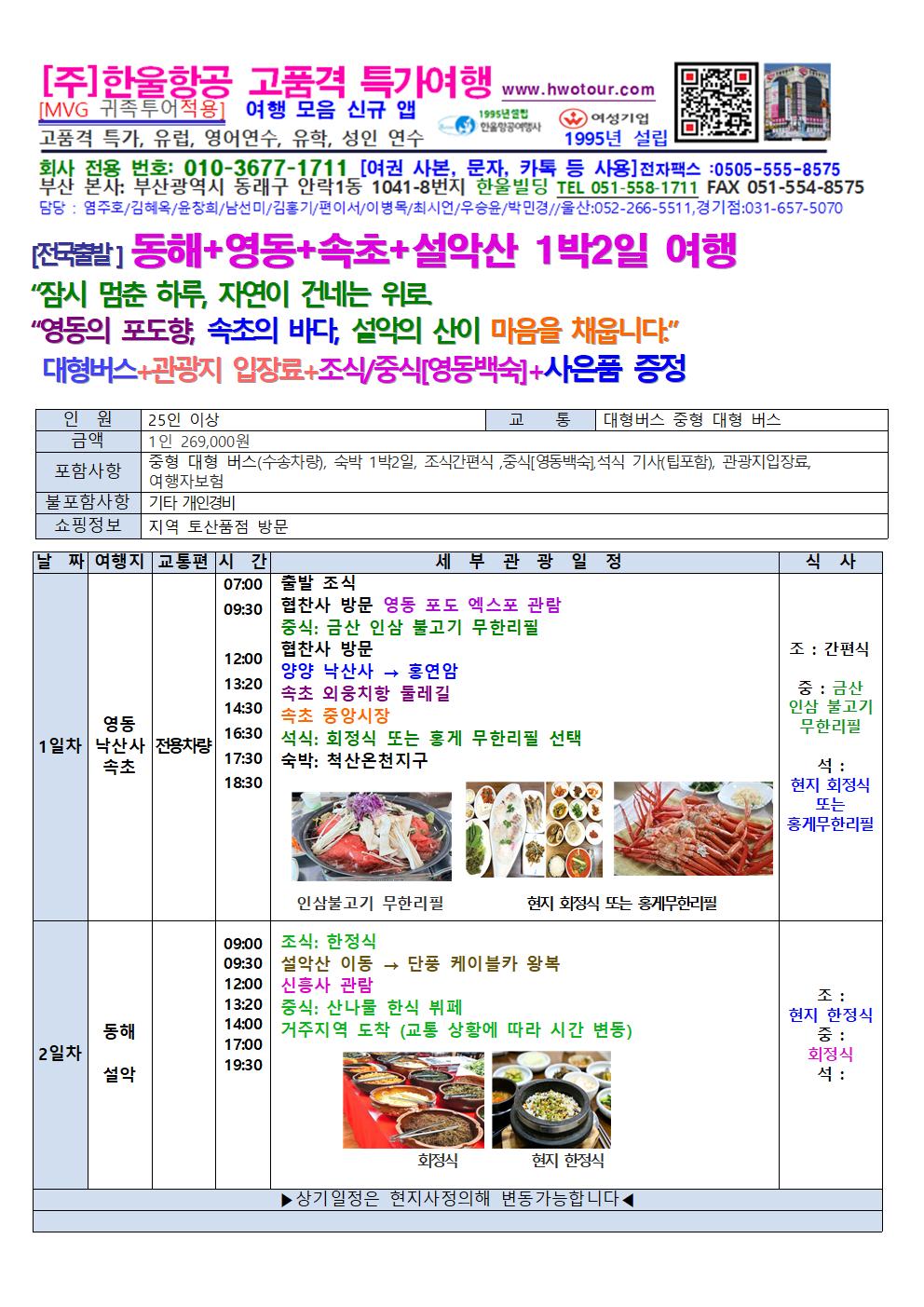 “영동의 맛과 멋 + 전남의 푸른 자연, + 서해의 낭만 + 설악산의 웅장함 , 그리고 가을 축제의 즐거움까지