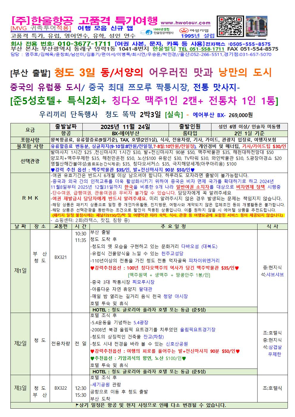 우리끼리 단독행사 청도 3일 동/서양의 어우러진 맛과 낭만의 도시