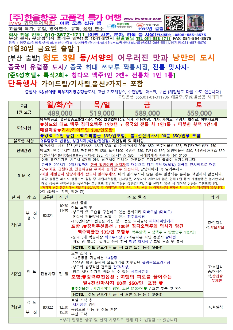 [1월30일 금요일 출발 ][부산 출발] 청도 3일