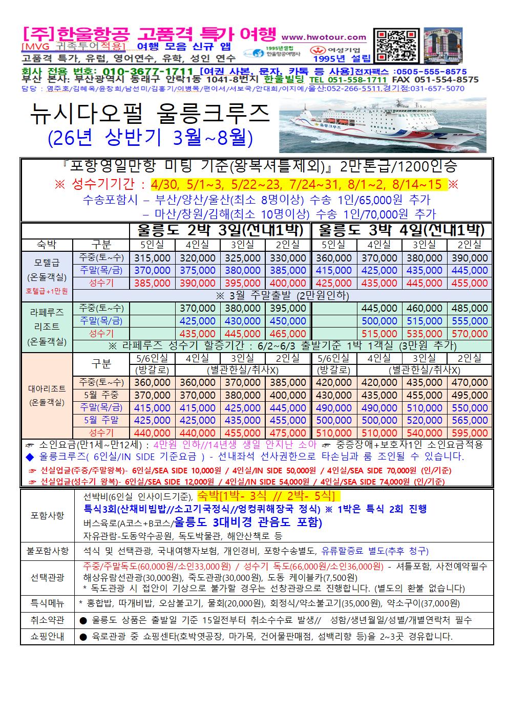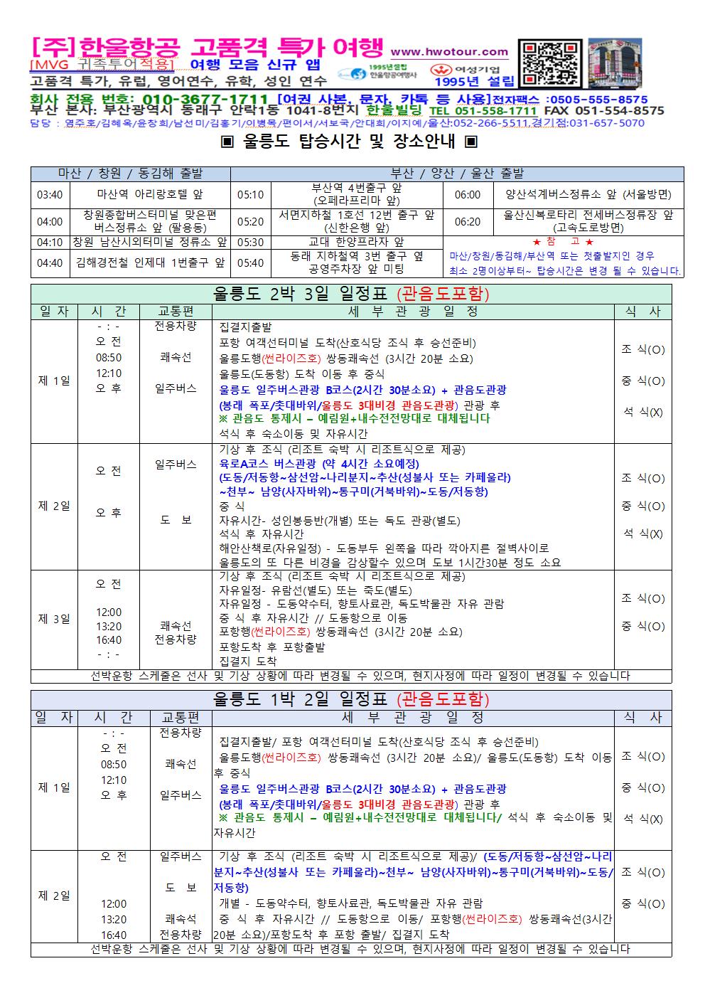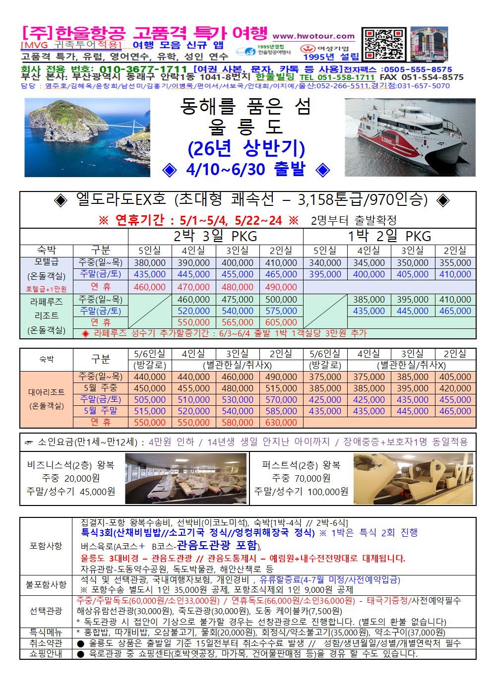 [전국출발] 울릉도 1박 2일 2박 3일 엘도라도 EX호 썬라이즈호 초대형 쾌속선 또는 울릉 크루즈 [1200명탑승]