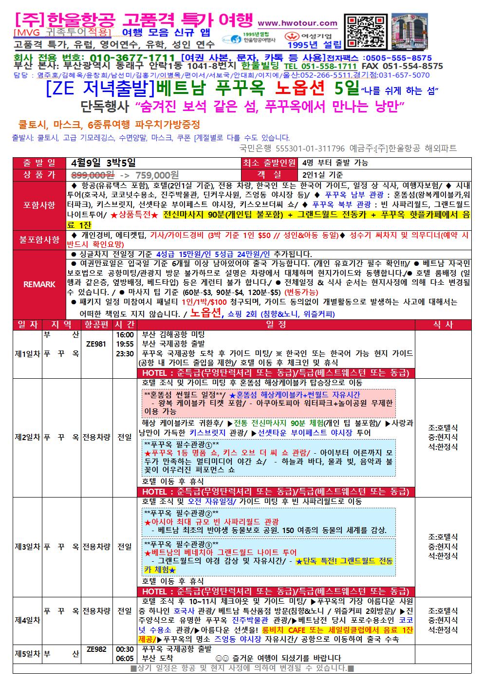“부산출발 4월 9일! 푸꾸옥에서 보내는 특별한 봄, 에메랄드 바다와 함께 당신의 여행이 시작됩니다.”