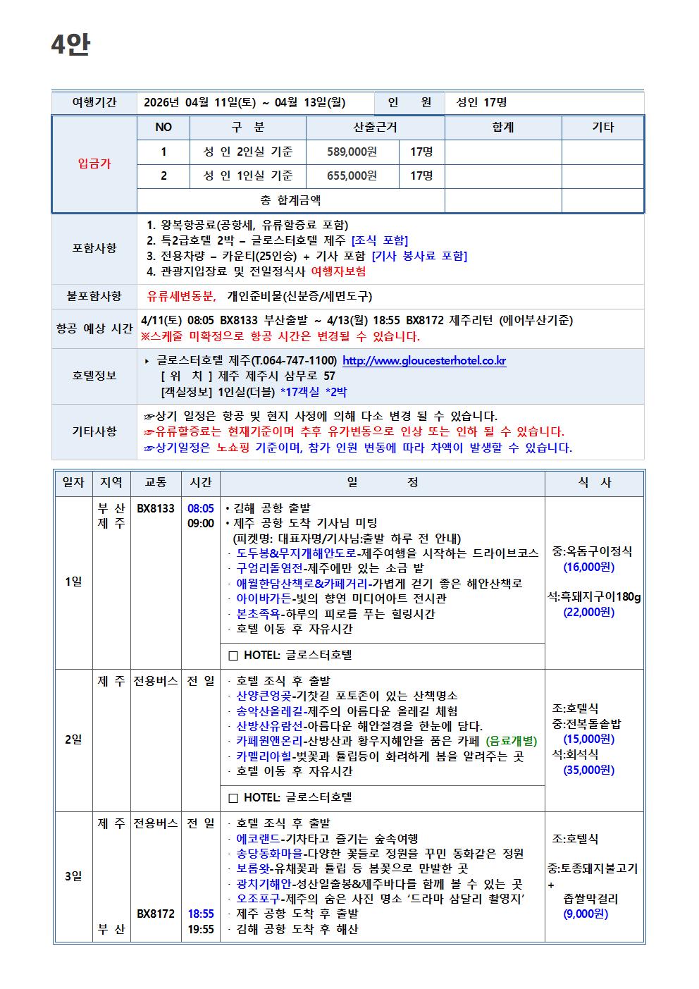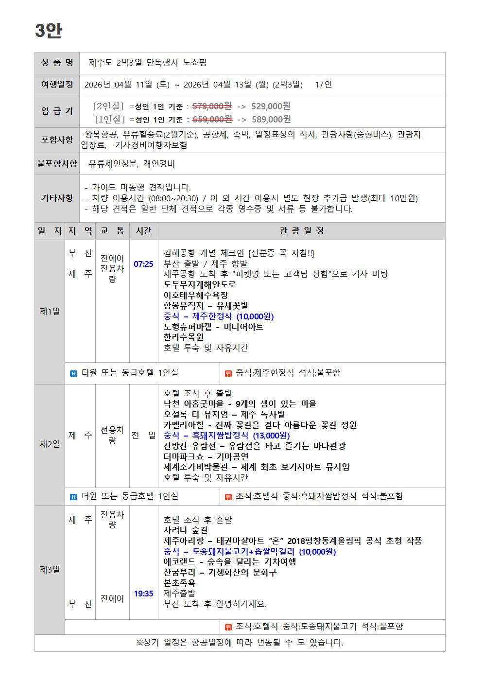 “단독행사로 제주도 코스변경 되는 최고의 상품 ! 여행 모음 BEST”