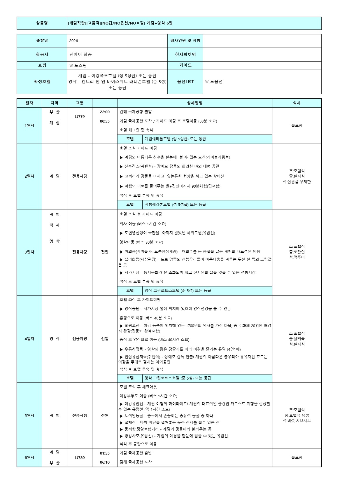 계림 직항 6일 노팁 노옵션 품격