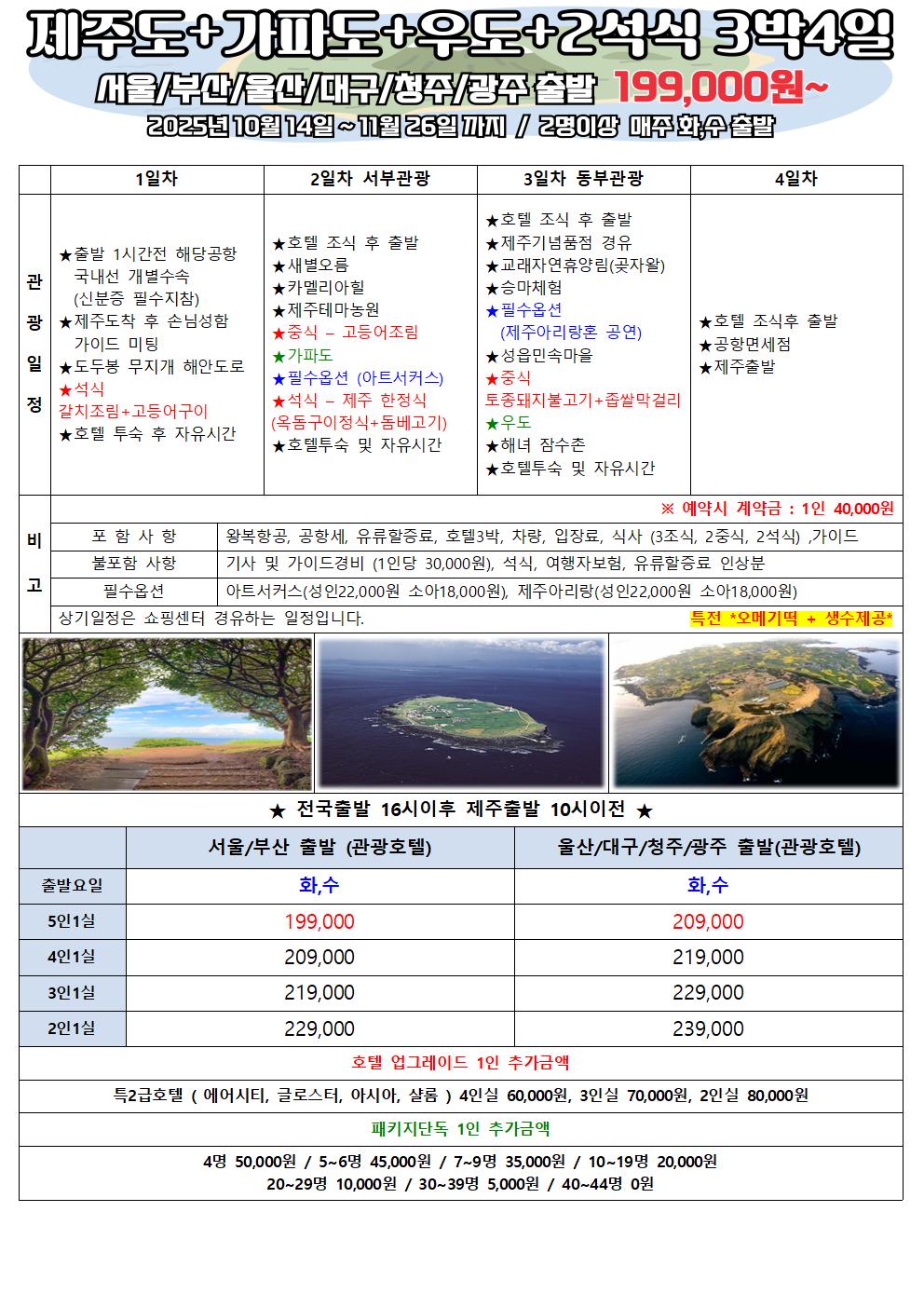 [부산, 서울, 대구, 청주, 광주 출발] 특가!!! 제주 이번 가을에 한 번 자연의 소리를 만끽해보자!!!