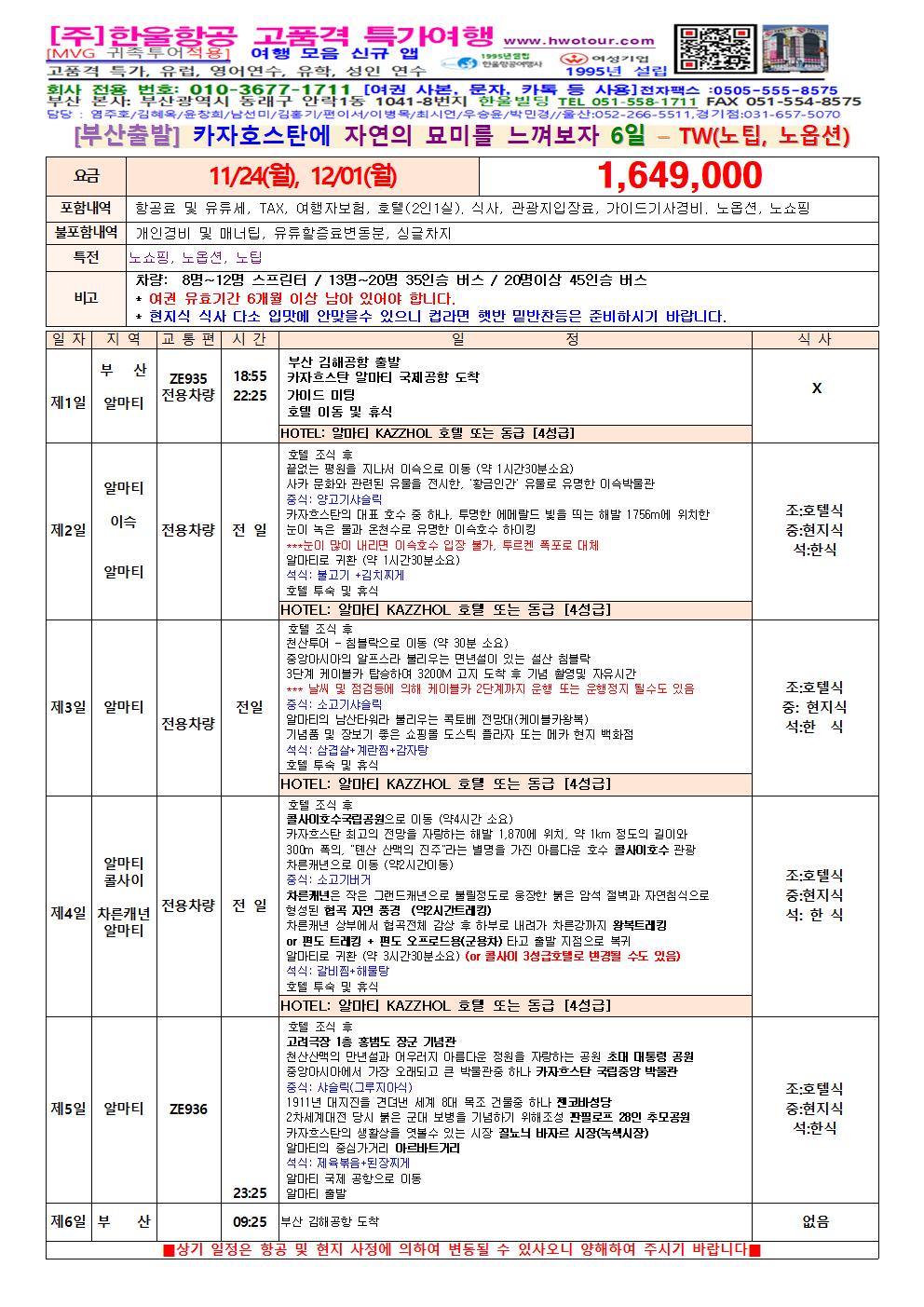 호텔 HOTEL: 알마티 KAZZHOL 호텔 또는 동급 [4성급] 식사 [조식] 호텔식 [중식] 현지식 [석식]한식 -