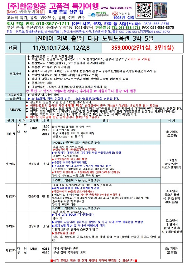 [부산 출발] 다낭, 우리 이번 겨울은 저렴하게 어디 한 번 떠나보자!!!- 3박 5일(노팁, 노옵션)