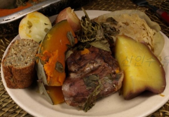 뉴질랜드 원주민 전통 쇼 마오리 민속 쇼를 보면서 전통식사 항이 디너
