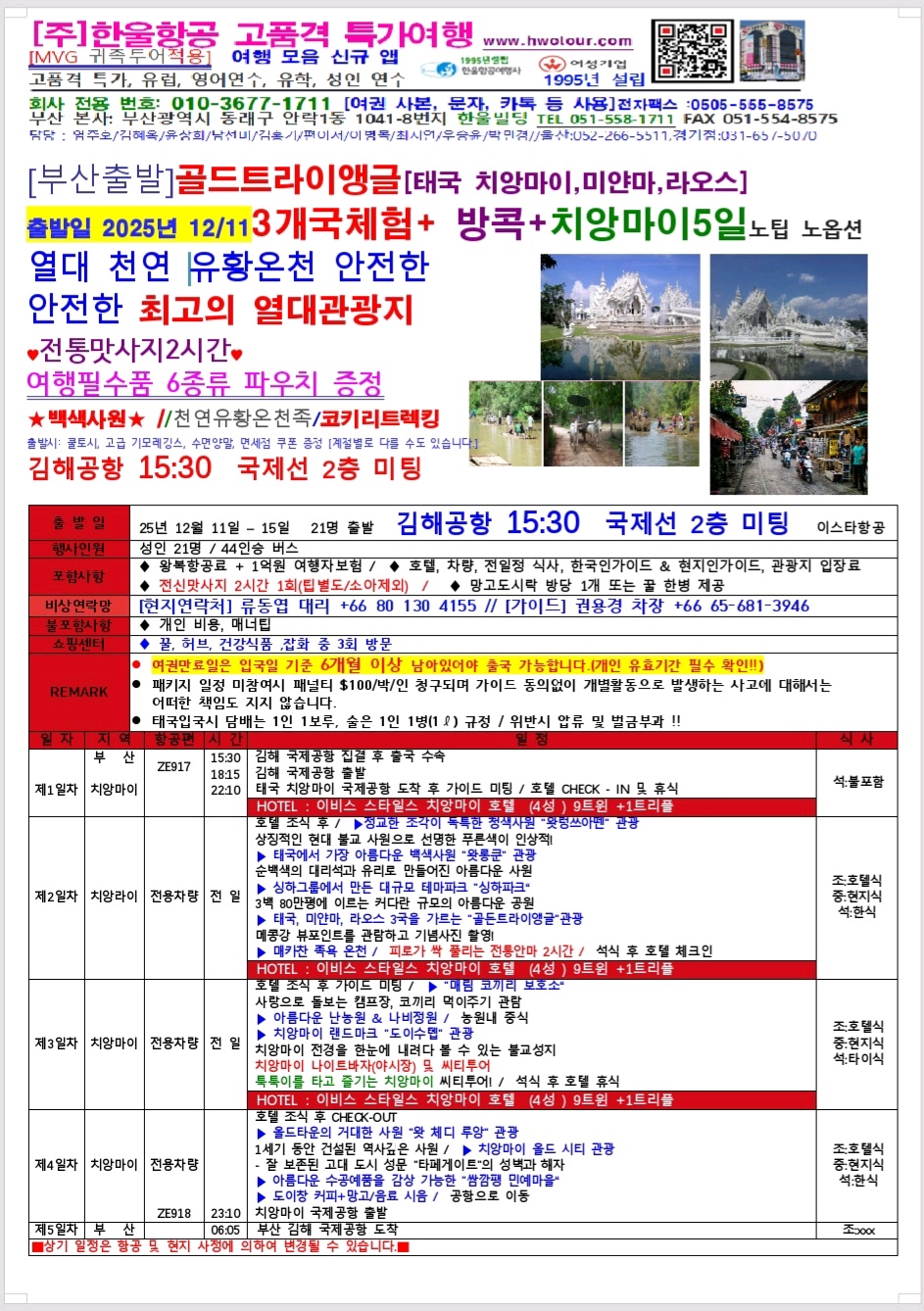 출발 25.12.11 골든 트라이앵글 (태국 치앙마이·미얀마·라오스)