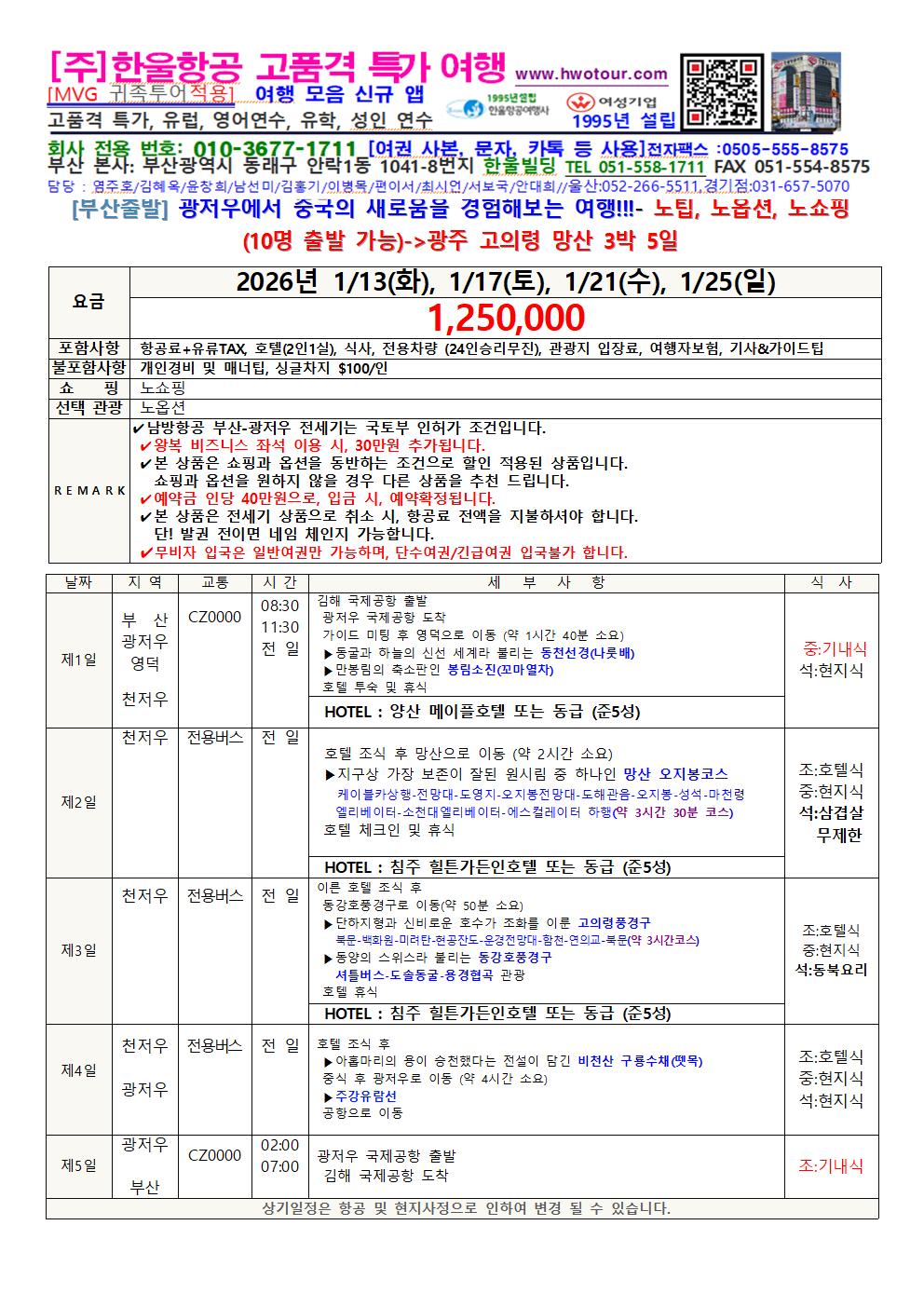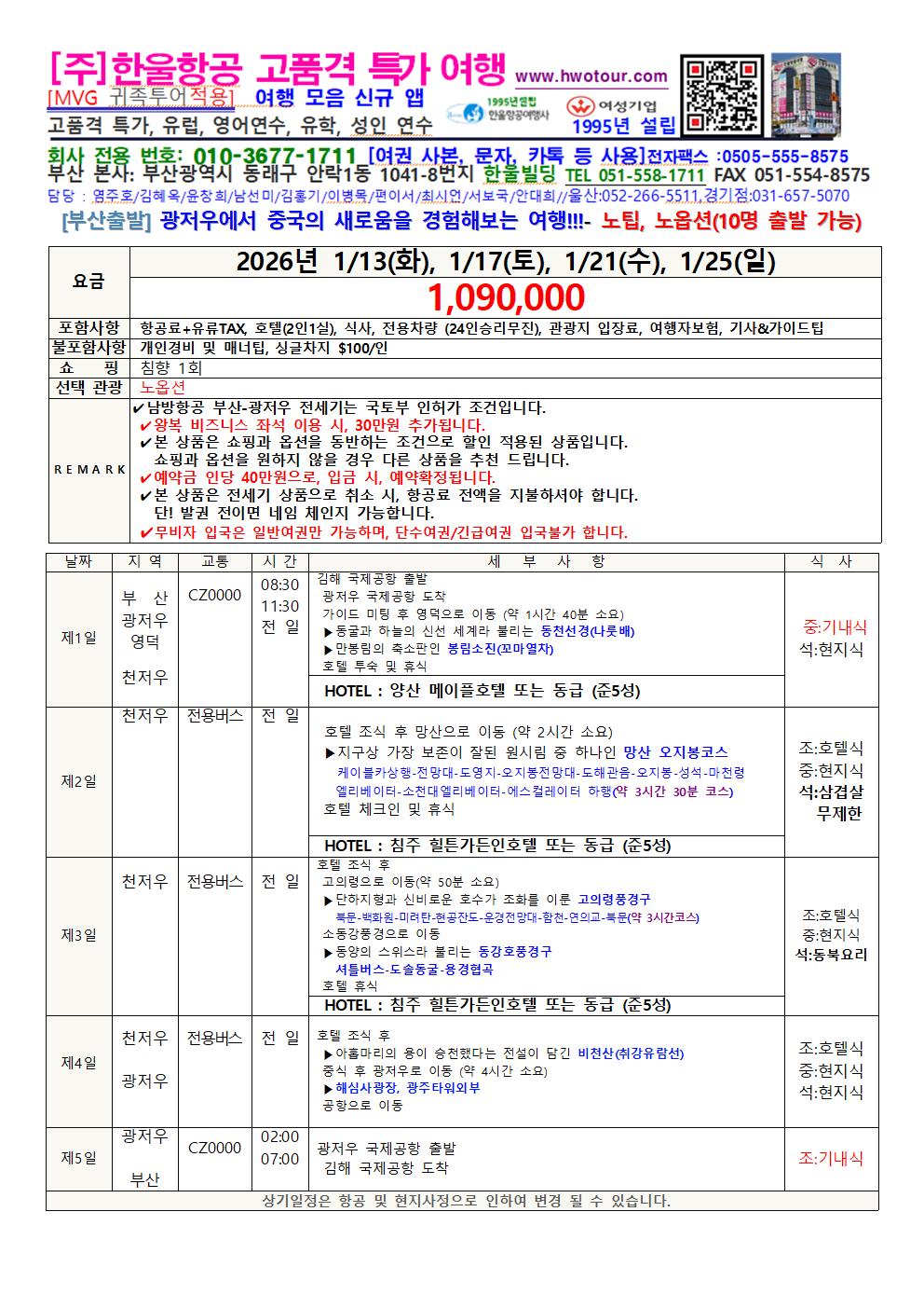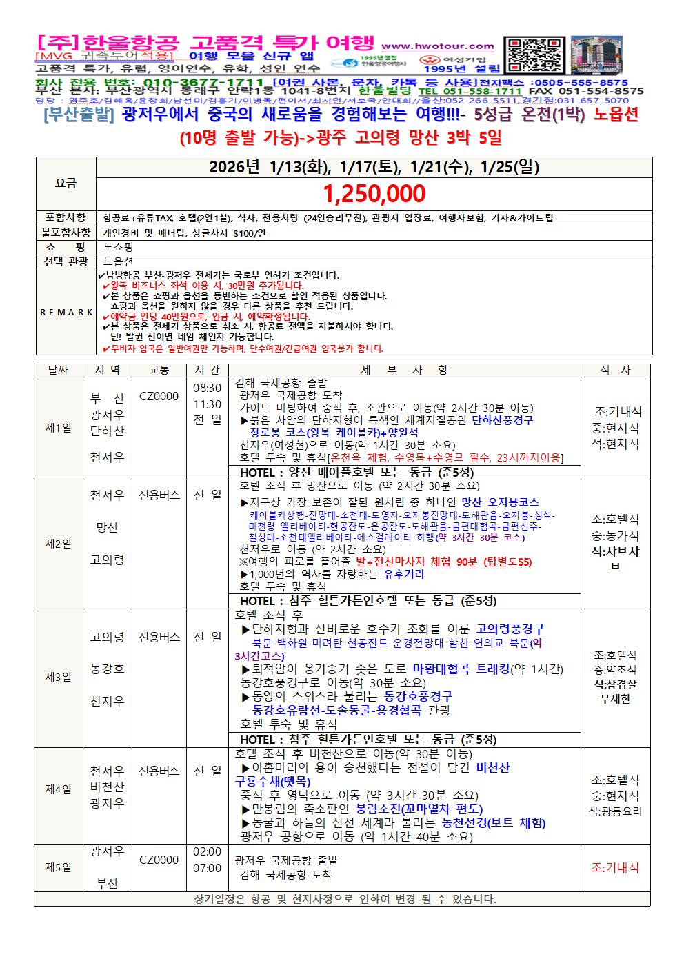 [부산 출발] 빛의 도시 광저우, 밤이 더 아름다운 시간, 이번 새해 여행은 광저우 여행 어떠실까요? 3박 5일