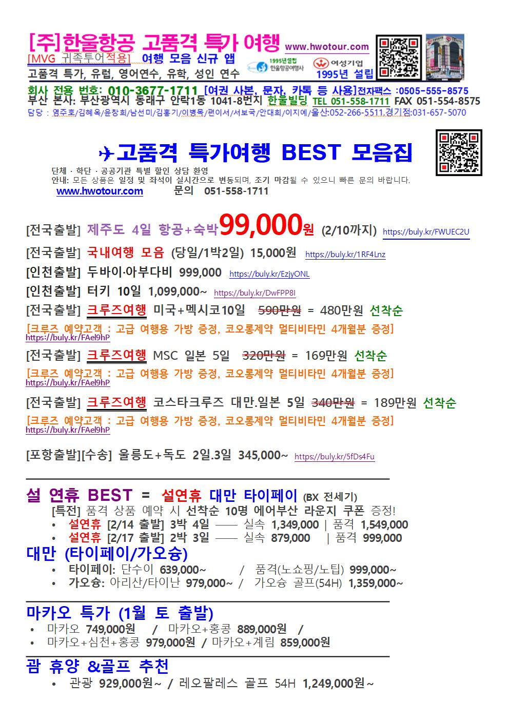 [전국출발] ✈ 30가지 인기상품을 한눈에! 고품격 · 특가여행 BEST 모음