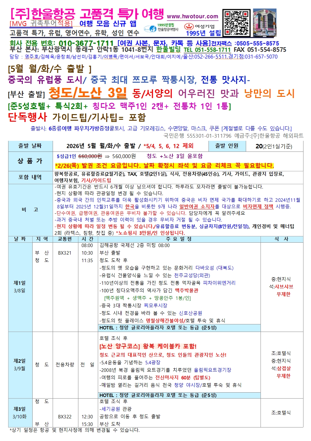 5월 [월/화/수 출발 ]
