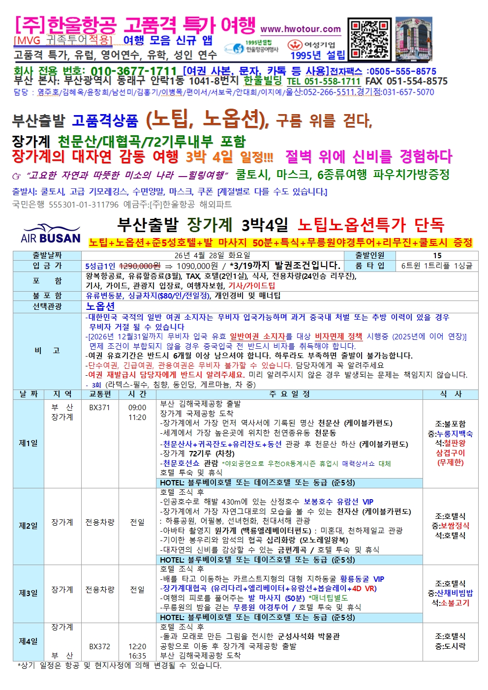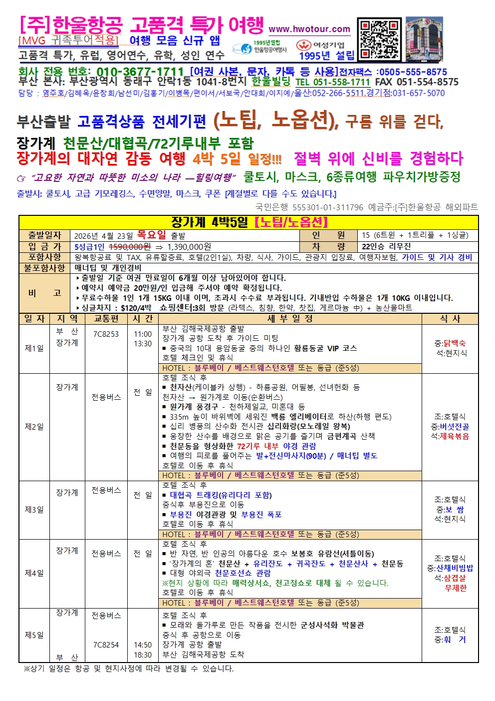 [부산출발] 고품격상품 (노팁,노옵션) 구름 위를 걷다 절벽 위에 신비를 경험하다