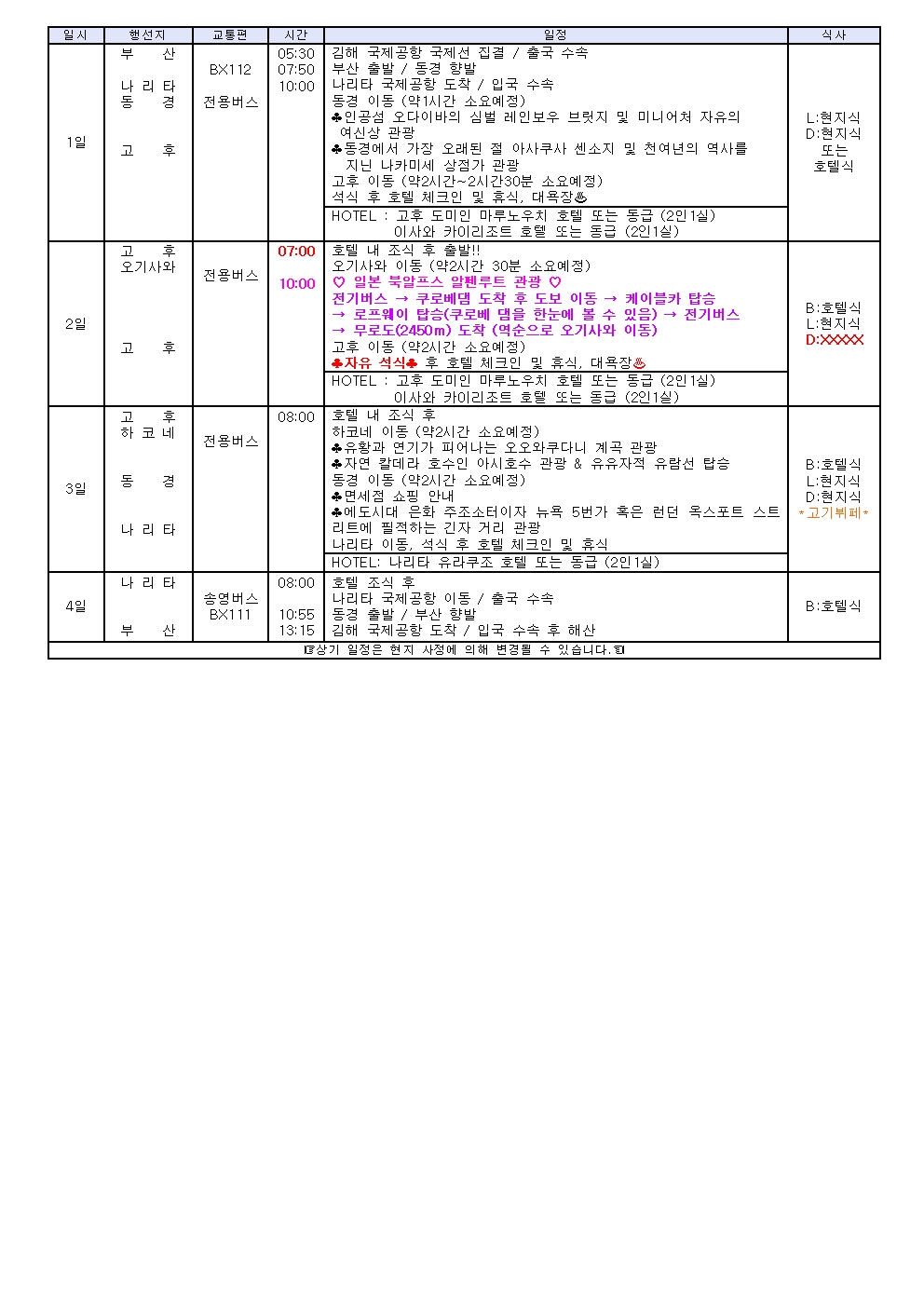 출발일 : 26년7월15일까지 일본 유명관광지