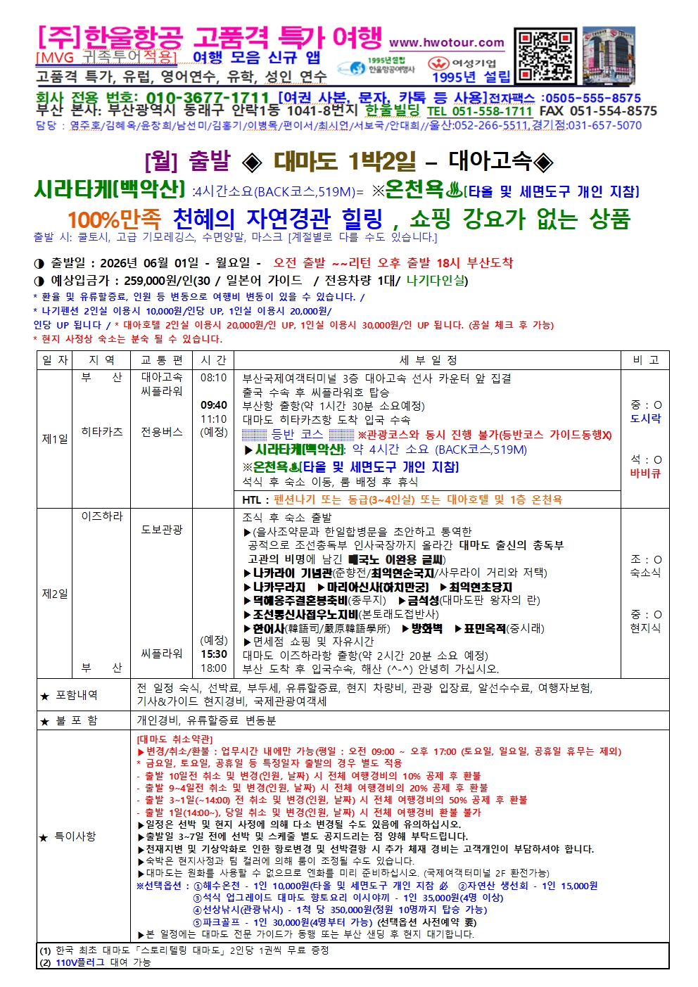 [부산출발 26년6월 1일]대마도 2일 시라타케 [백악산]온천욕♨“천혜의 자연에서 즐기는 1박 2일
