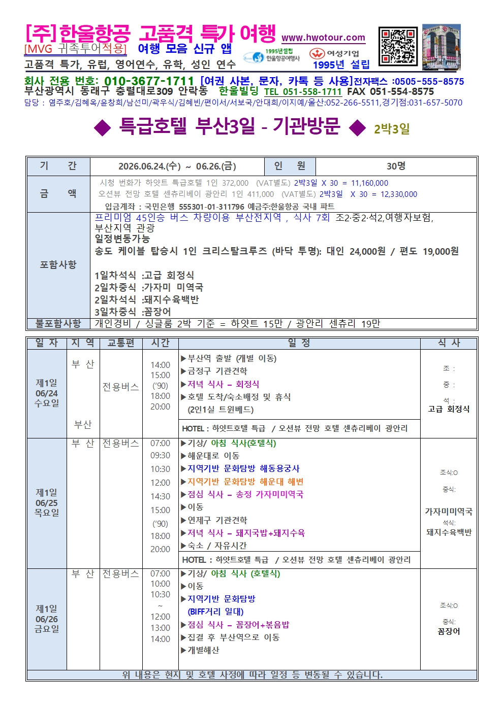 [ 부산 ] 6월24일~26일 2박3일 ✈️ 특급 2가지 호텔로 부산문화탐방 3일 고품격 (노팁, 노옵션, 특식 포함) 올포함 단독행사