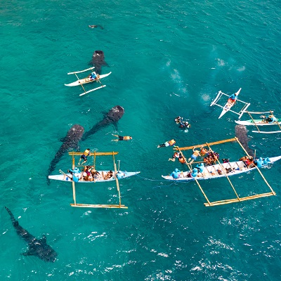 전통배 방카를 이용하여 줄낚시, 스노쿨링, 씨푸드 중식 제공