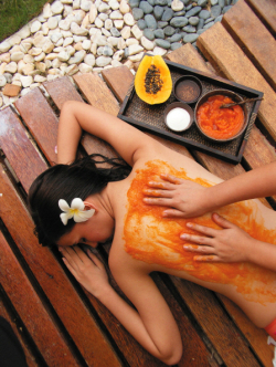 몸에 좋은 4가지 열대과일을 온몸에 발라 바나나 잎으로 몸을 감싼 후, 얼굴 마사지와 바디 랩핑을 마치면 오일을 이용 하여 전신 마사지가 진행됩니다. (구성 : 전신마사지 + 발마사지 + 얼굴마사지 / 재료 : 파파야, 구아바, 아보카도, 깔라만시, 꿀, 우유 등)