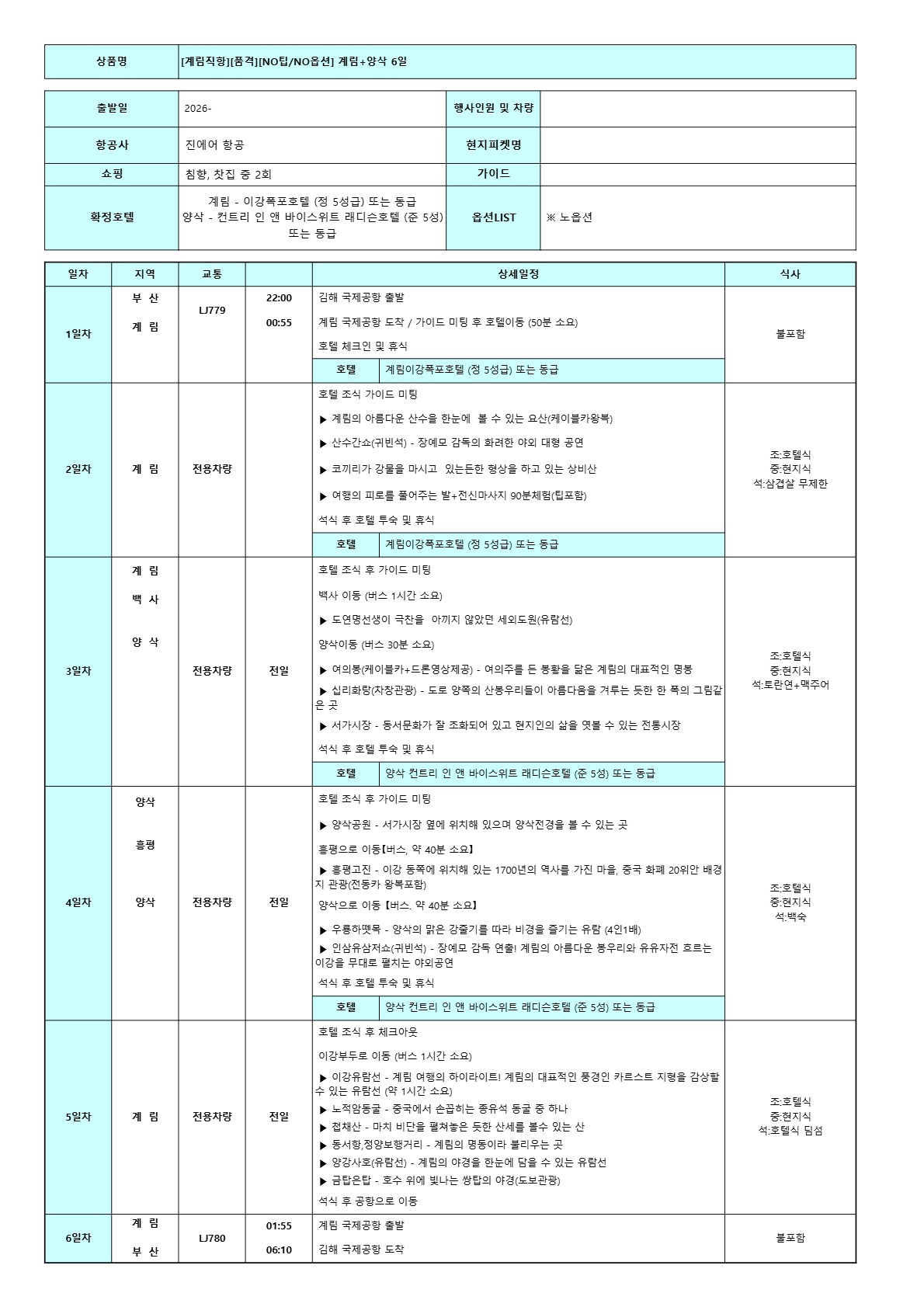 계림 직항 4가지상품 노쇼핑 노팁 노옵션