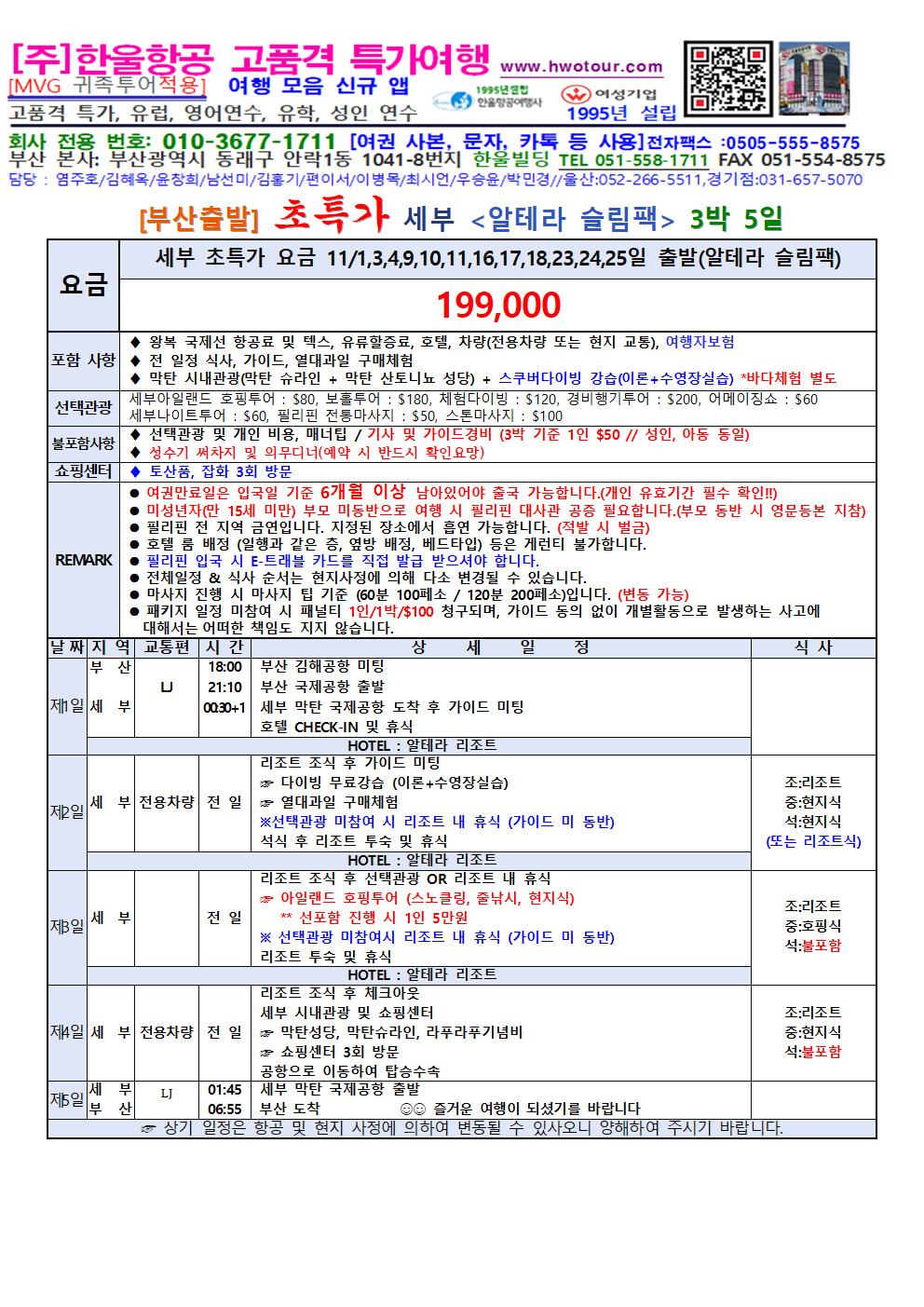 [부산 출발] 이번 세부 여행 가족들과 즐거운 경험 만들러 고고~~ 3박 5일