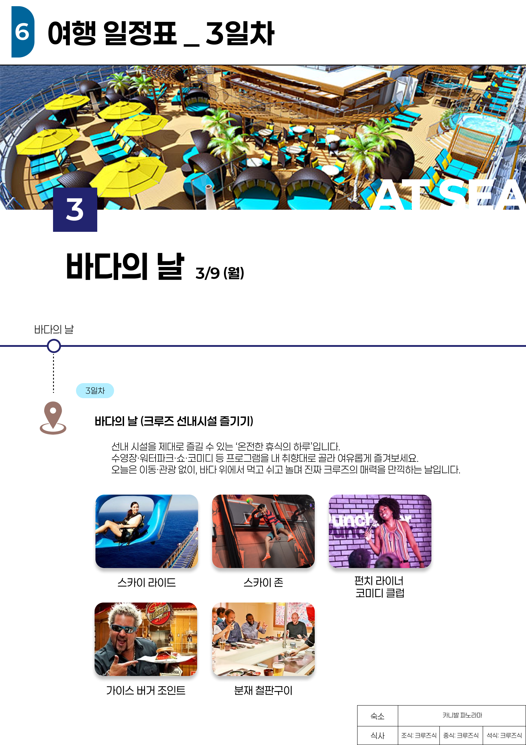 호텔 크루즈 식사 [조식]호텔식 [중식]크루즈식 [석식]크루즈식 -