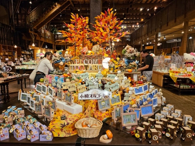 입구에 서있는 증기 시계가 시선을 사로잡는 오타루 오르골당