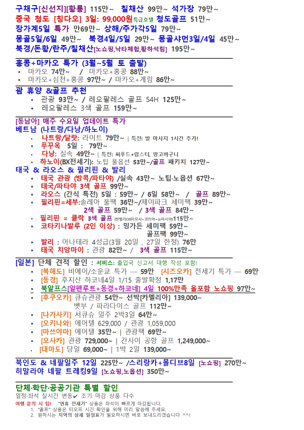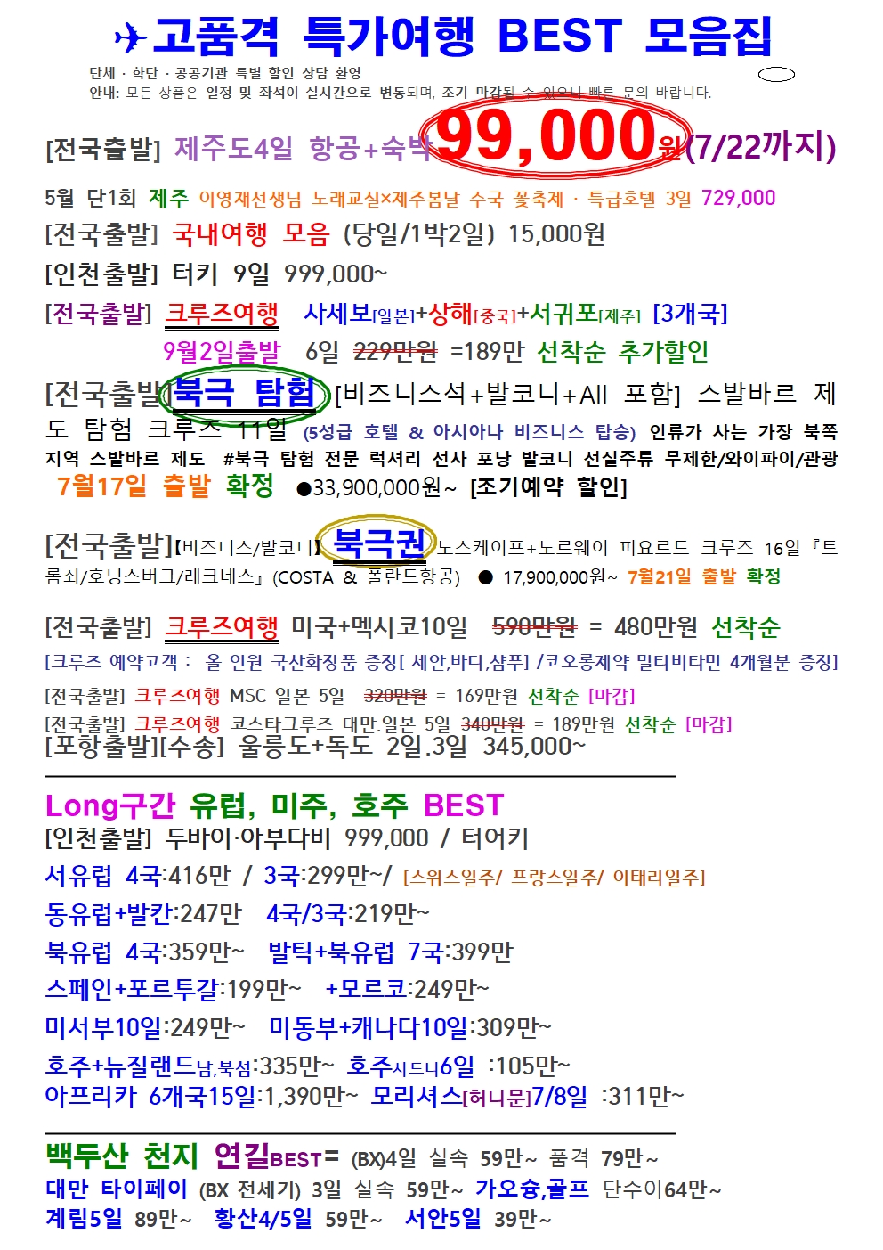 [전국출발] ✈ 70가지 인기상품을 한눈에!