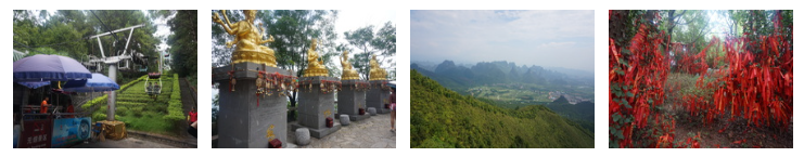 또한 정상 부근에는 "풍동(風洞)"이라 불리는 호리병같이 생긴 동굴이 있는데, 동굴 벽에는 불상, 그림, 시 등이 새겨져 있으나, 문화대혁명 시기를 거치면서 파손이 되어, 그 훼손 상태가 심각하다고 합니다. 이 외에도 첩채정, 월각, 인지당, 첩채누, 망강정 등 볼거리들가 많이 있으며, 정상까지는 등산객을 위해 설치되어 있는 계단을 이용해 약 20분 정도가 소요됩니다.