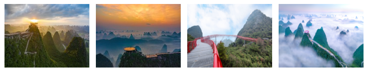 상행 케이블카 - 원보봉 - 구름다리 - 여의봉정상 - 숲속산책로 - 유리잔도 - 하행 케이블카● 우룡하뗏목 - 양삭의 맑은 강줄기를 따라 비경을 즐기는 유람 (4인1배)